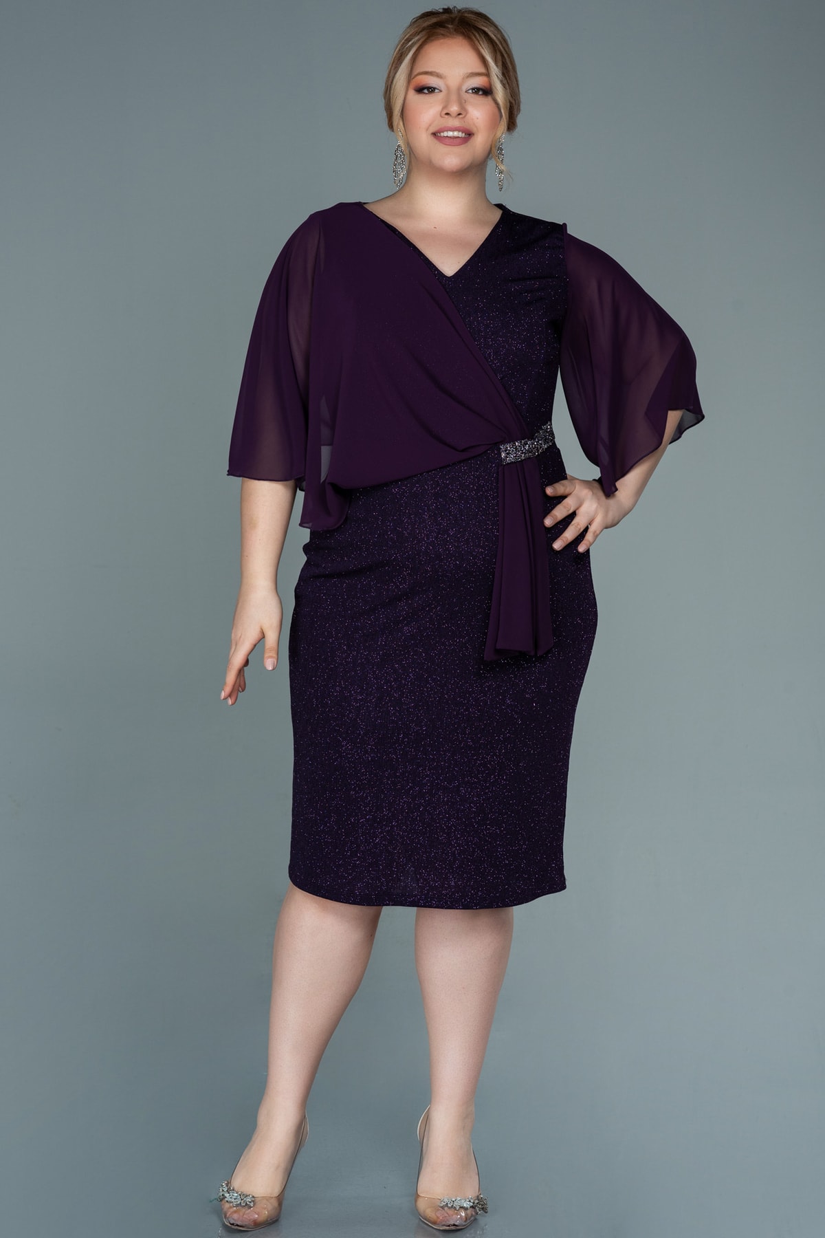 Kısa Kol Simli Midi Büyük Beden Abiye Abk1610